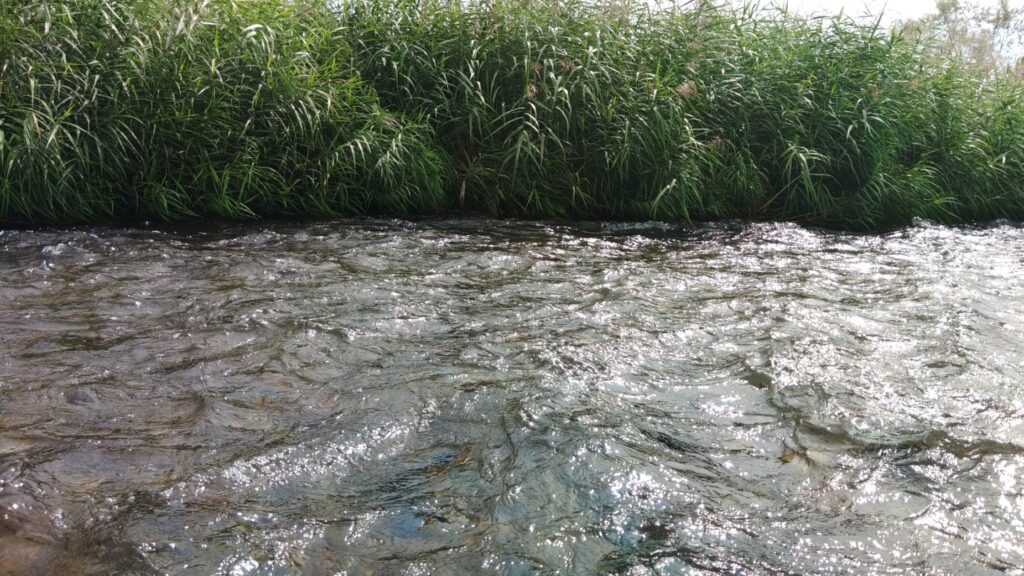 岩盤あり,ザラ瀬,細く絞れた速い流れありで変化に富んでいる。
