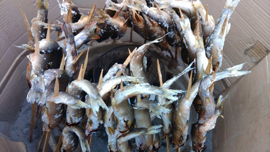屋外での塩焼きは暖かい日に限るね!?